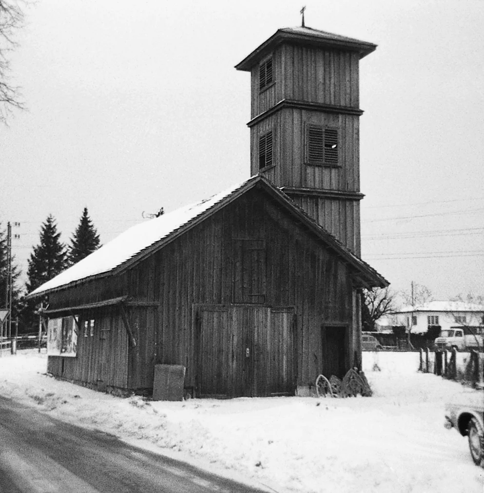 Alter Gemeindeschuppen in der Specki (1974 abgebrochen), der zugleich auch als Spritzenhaus diente.